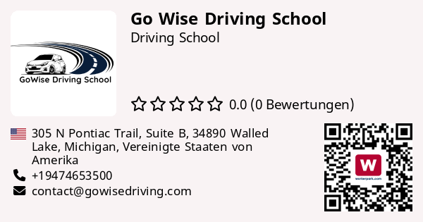 "Go Wise driving School is a driving education provider based in downtown Walled Lake, Michigan. With a mission to equip both teens and adults with the skills and confidence to drive safely, Go Wise Driving aims to be a trusted local resource for comprehensive driver education. Our Programs include Michigan-certified Segment 1 and Segment 2 training courses for teens, as well as personalized instruction for adult learners (Pick up and drop-off available). The school offer a supportive learning environment,emphasizing defensive driving techniques and real-world readiness. Located in the heart of Walled Lake, Go Wise Driving School is poised to serve the local community as well as surrounding cities in Oakland County, MI. Classes Schedule on web : www.gowisedriving.com