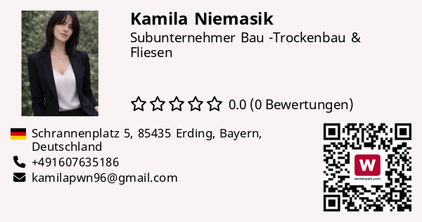 Selbstständige Unternehmerin im Bauwesen. Organisation von qualifizierten Montageteams, zuverlässige Projektabwicklung und klare Kommunikation.