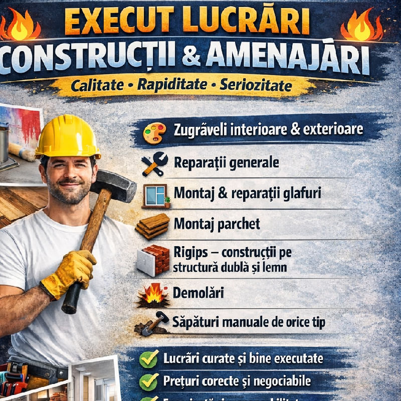 Construcțîi, amenajări interioare și demolări