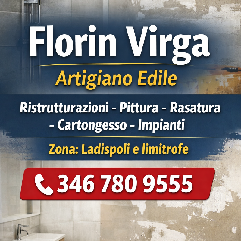 Artigiano edile con esperienza in ristrutturazioni complete: pittura, rasatura, cartongesso, muratura, rifacimento bagni e appartamenti. Lavoro pulito, preventivi chiari, interventi in zona Ladispoli ,Roma e zone limitrofe