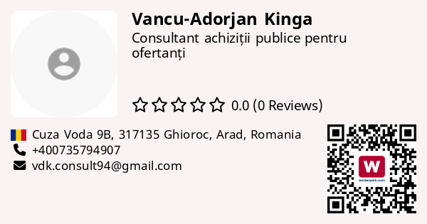 Ofer servicii de consultanță în achiziții publice (SEAP) pentru ofertanți. Serviciile includ: inrolare în sistem, monitorizare anunturi în funcție de domeniile de interes ale beneficiarului, intocmire documente pentru participare la licitații și achiziții directe, verificare eligibilitate, consultanță în incarcarea documentelor pe platforma, verificare stare licitație, obtinere polita de asigurare pentru garanție de participare si/sau garanție de bună executie
