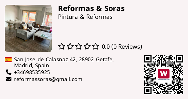 Reformas & SorasReformas & Soras con más de 20 años de experiencia hacemos reformas de interior pintura, alisado de paredes, alicatado de baños, cocinas, suelo, tarima flotante, montaje de puertas de interior , electricidad, pladur, molduras de escayola, etc. ofrecemos garantía de los trabajos.