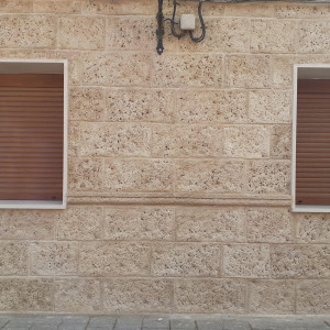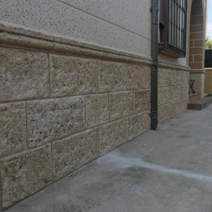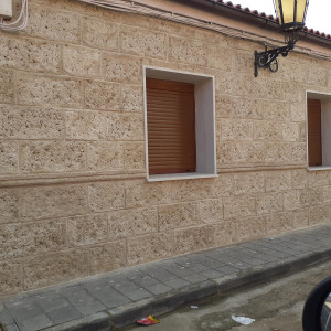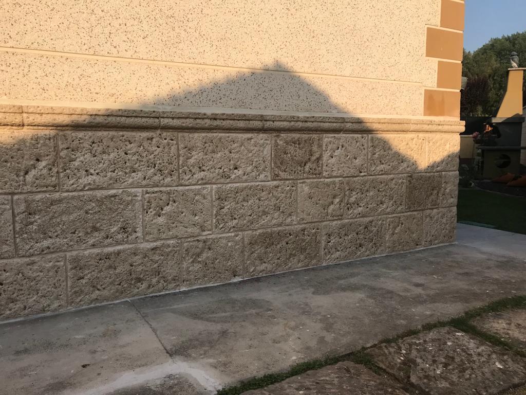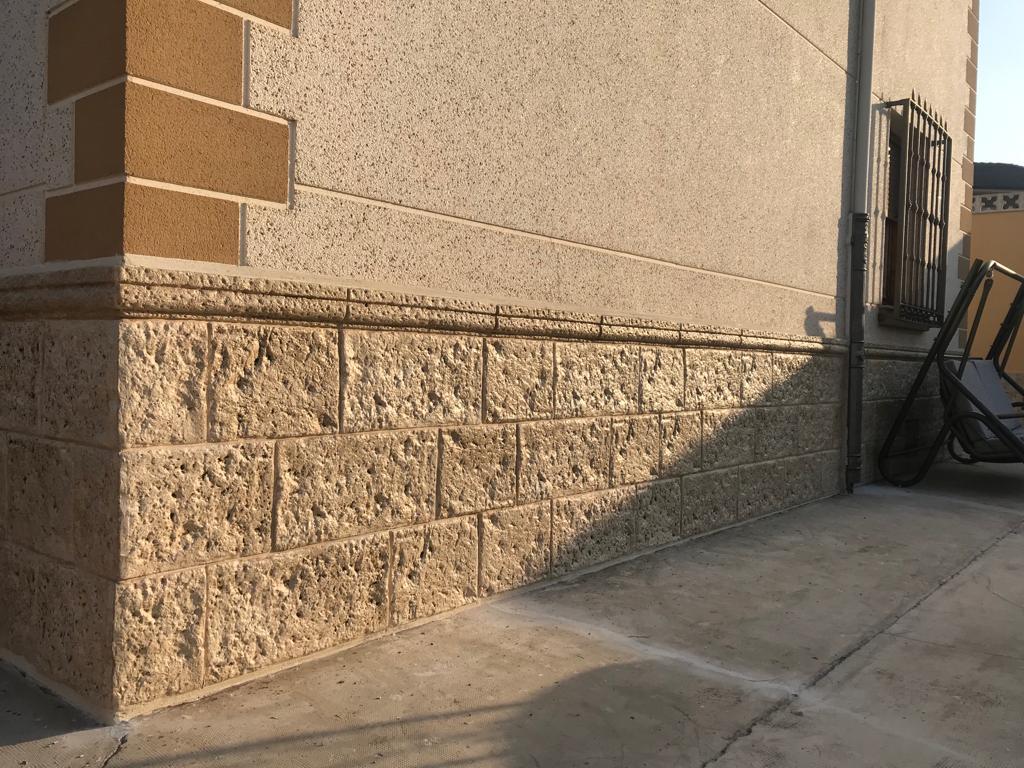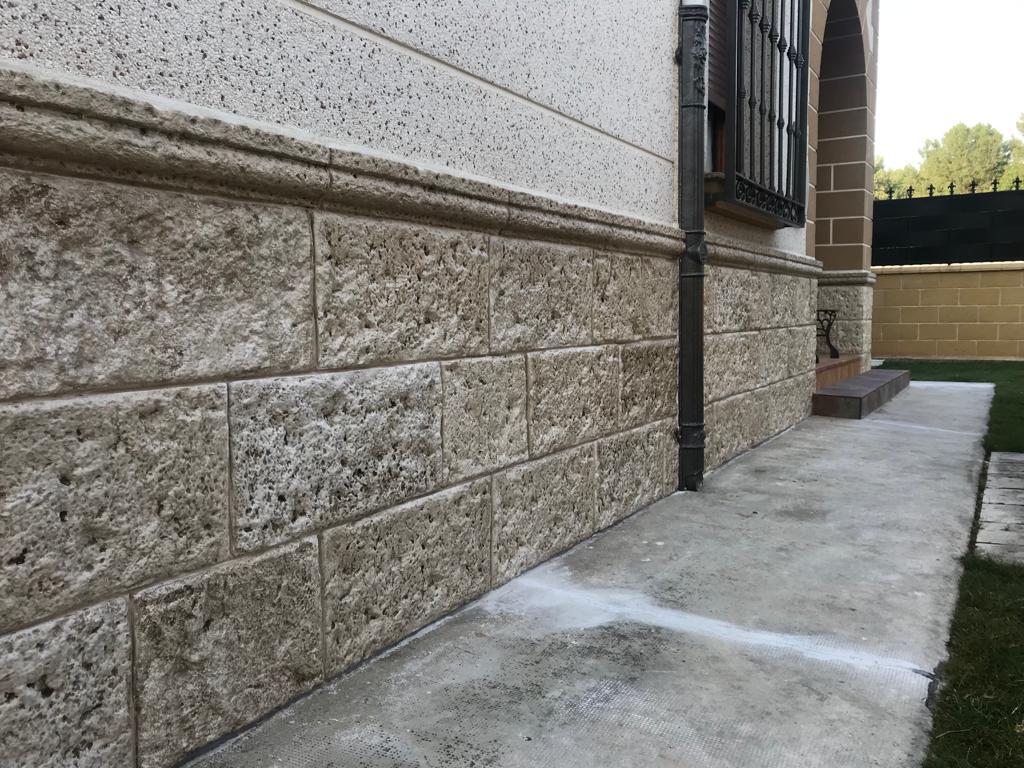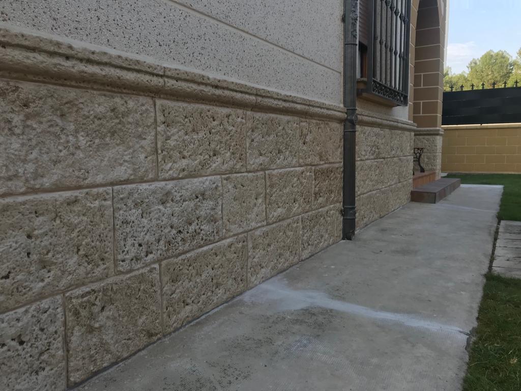 fachadaspiedra artificial para fachadas en acabado rústico texturizado, ideal para proteger y embellecer viviendas. Esta piedra decorativa ofrece un aspecto natural tipo piedra tallada, con tonos beige–arena que combinan con cualquier estilo. Su instalación es rápida y su mantenimiento prácticamente nulo, perfecta para zócalos exteriores, revestimientos de muros, paredes exteriores y fachadas de casas que buscan durabilidad y resistencia a la humedad, golpes y cambios climáticos. Una solución elegante