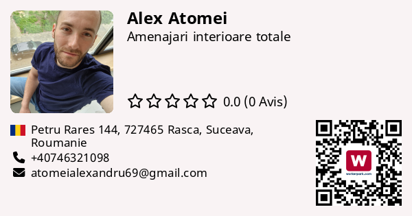 Salutare tuturor!Ma numesc Alex si vin in ajutorul vostru cu o experienta vasta in amenajari interioare si finisaje premium!Nu ezitati sa ma contactati pentru proiectele voastre🙂👋