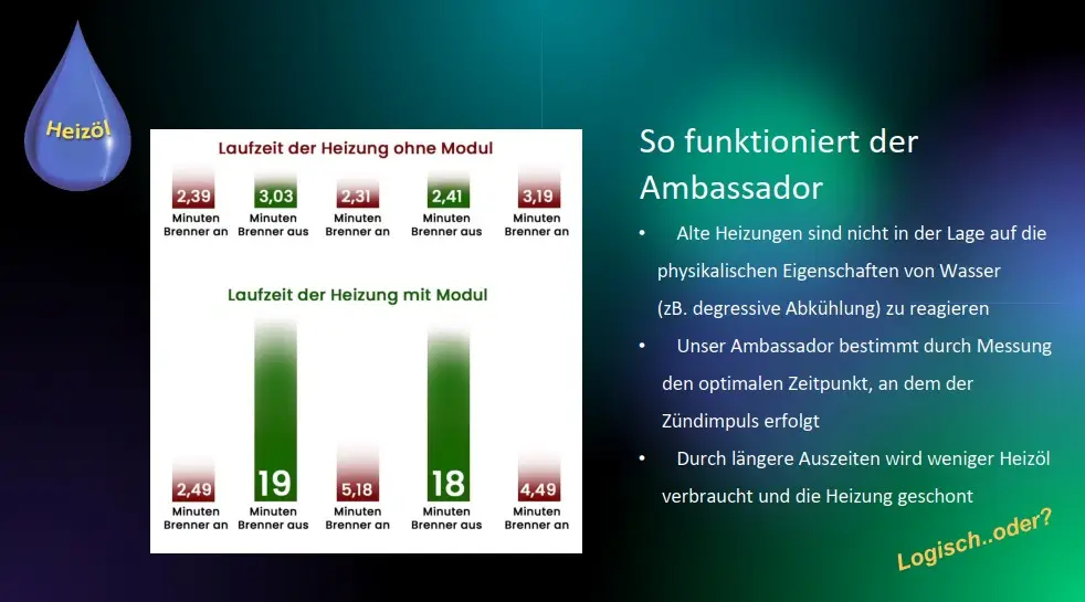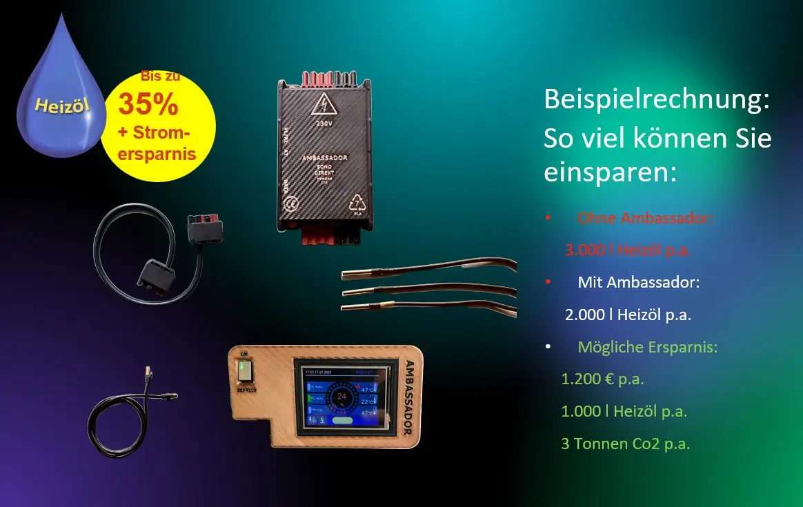 Optimierung von Ölheizungen, Heizungsmodernisierung, Heizöl sparen, Heizkosten senken, AMBASSADOR, einfache Nachrüstung, Alternative zum Komplettaustausch, Ölheizung modernisieren, AMBASSADOR macht bestehende Anlagen intelligenter.