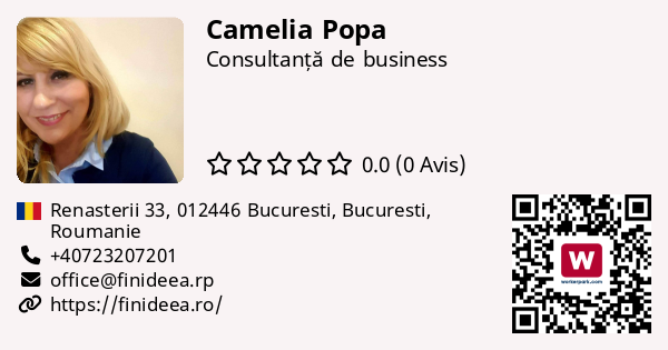 Sunt Camelia Popa, consultant cu peste 5 ani de experiență în fonduri nerambursabile, formare profesională și management de proiect. Prin Finideea Consulting, ofer sprijin complet pentru cei care vor să transforme o idee într-o afacere viabilă sau să-și crească businessul prin resurse externe.