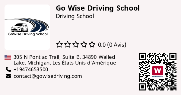 "Go Wise driving School is a driving education provider based in downtown Walled Lake, Michigan. With a mission to equip both teens and adults with the skills and confidence to drive safely, Go Wise Driving aims to be a trusted local resource for comprehensive driver education. Our Programs include Michigan-certified Segment 1 and Segment 2 training courses for teens, as well as personalized instruction for adult learners (Pick up and drop-off available). The school offer a supportive learning environment,emphasizing defensive driving techniques and real-world readiness. Located in the heart of Walled Lake, Go Wise Driving School is poised to serve the local community as well as surrounding cities in Oakland County, MI. Classes Schedule on web : www.gowisedriving.com