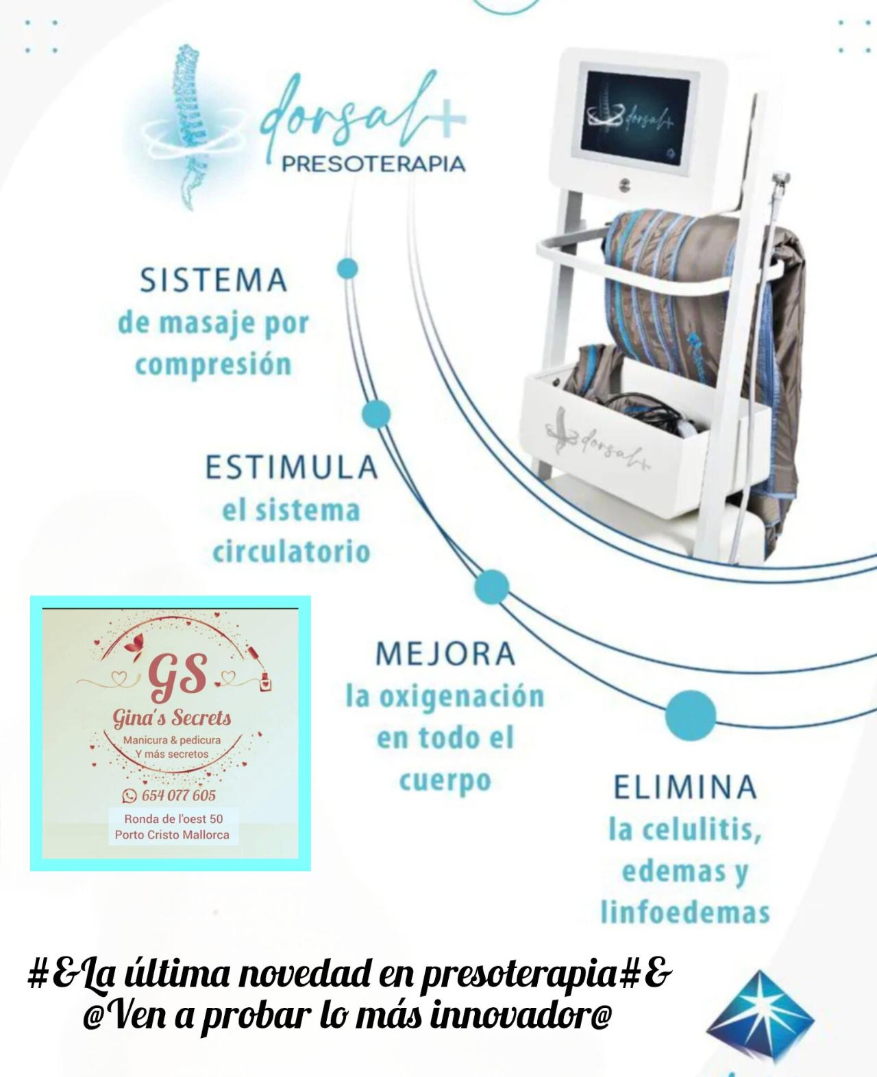 Gina’s Secrets es una estética elegante y acogedora, pensada para el cuidado integral y el bienestar. Especializada en manicura, pedicura y presoterapia, combina técnicas profesionales con un ambiente relajante y sofisticado. Su imagen, representada por Gina’s Secrets, transmite feminidad, exclusividad y atención al detalle, invitando a descubrir pequeños rituales de belleza que realzan la confianza y el autocuidado. ✨💅🦶