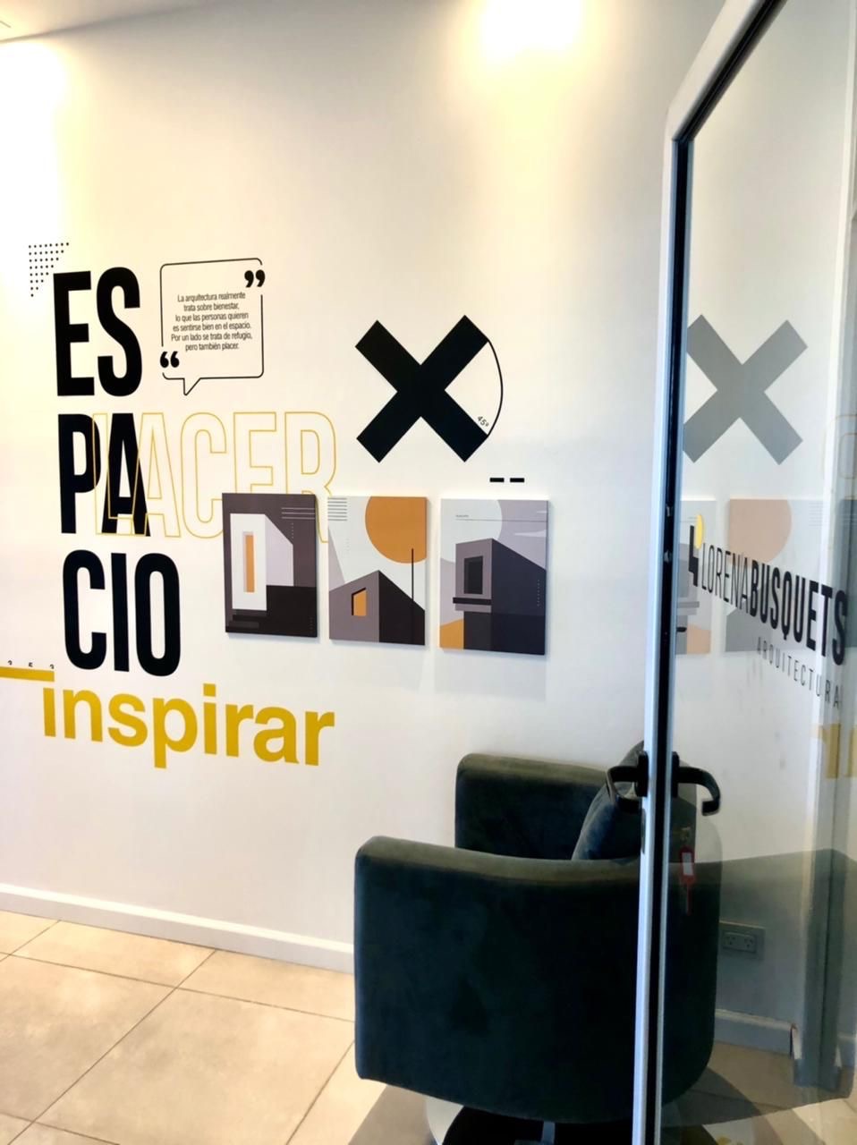 Acabado gráfico integrado en el diseño del espacio.